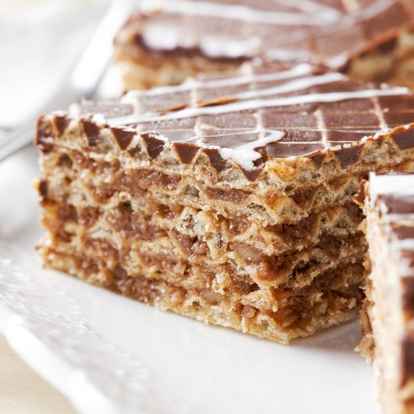 Biscotti wafer con zuccheri ed edulcorante ricchi di proteine.